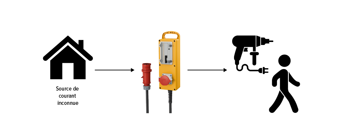 Dans des situations de travail mobiles ou temporaires, comme par exemple lors des interventions des pompiers ou sur les chantiers, la protection différentielle fixe est souvent inconnue. Un PRCD compense ce risque et offre :