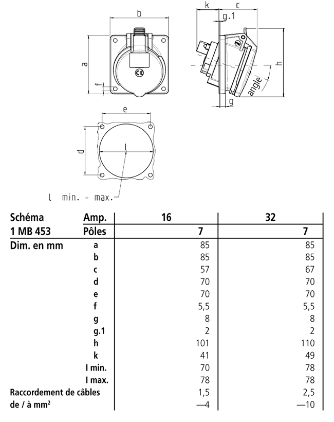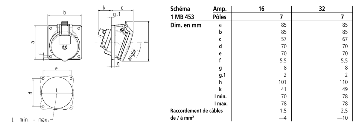 | Ampère | 16 A |