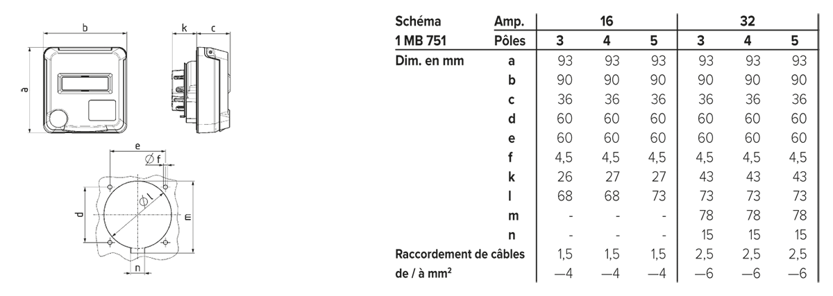 simple, pour tous les socles encastrés et les socles de prises de courant semi-encastrés Cepex 16 A et 32 A, pour l’installation d’une seule prise de courant ou pour une combinaison verticale de plusieurs prises