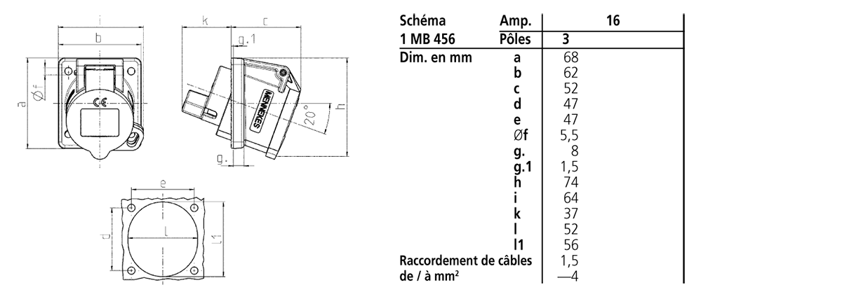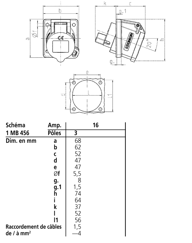 Prise en saillie MENNEKES pour 16 A avec contacts vissés éprouvés.