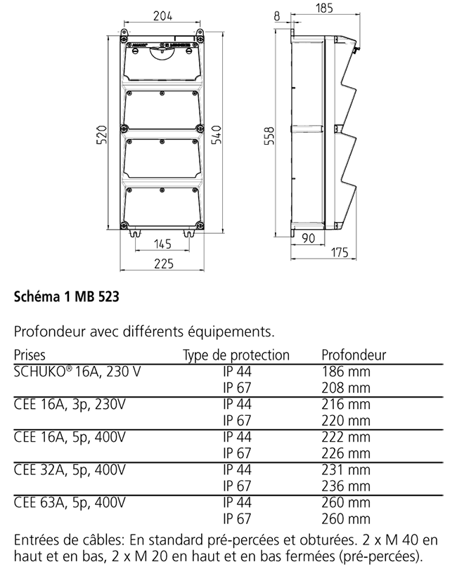 | Prises de courant de données | 2 Cepex connecteur informatique socket RJ45, 2 fold cat.6 |