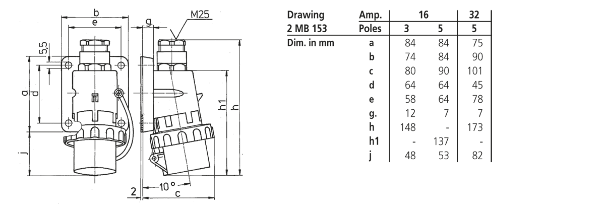 für wasserdichte Stecker, Wand- und Anbaugerätestecker 16 A, 3 p