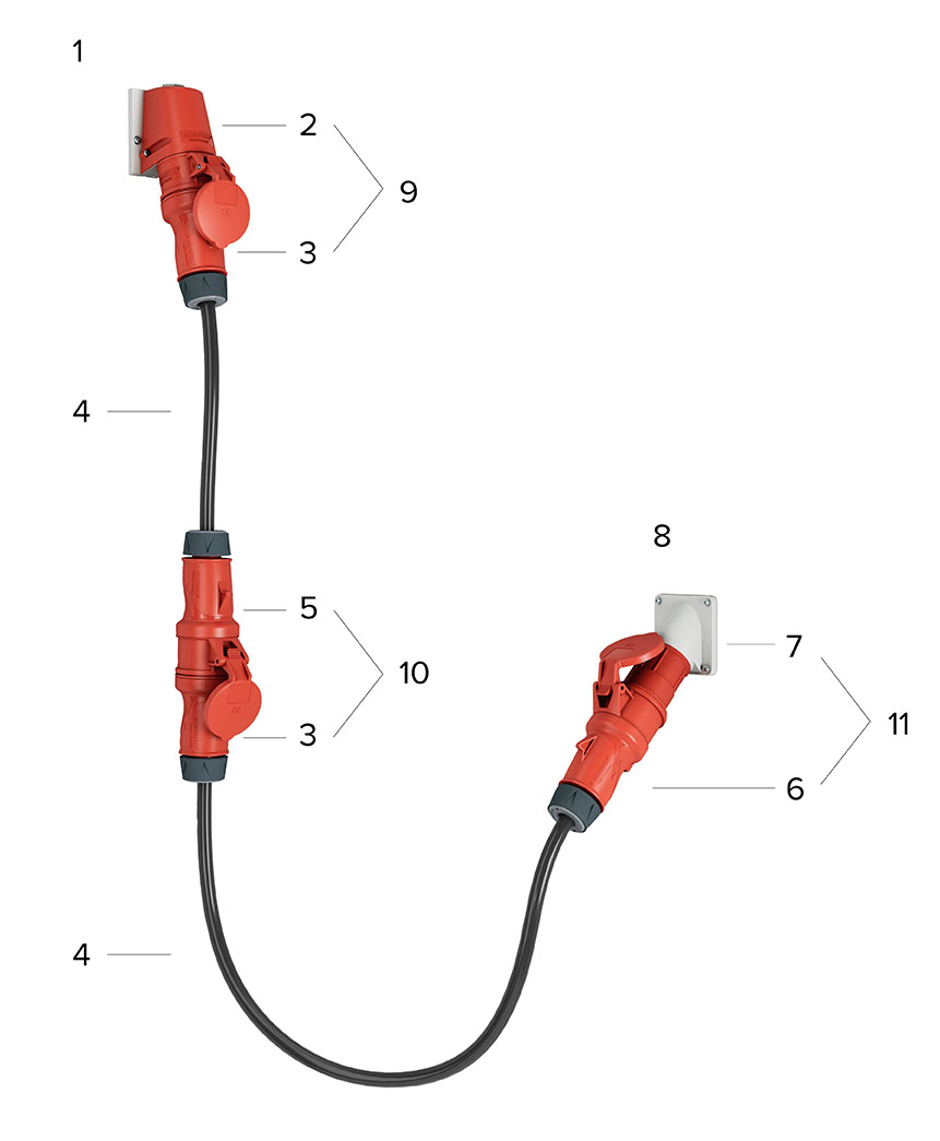 Unsere Steckvorrichtungen werden entsprechend der IEC 60309-1 (dem internationalen Standard für Stecker und Steckdosen, Leitungskupplungen und Gerätesteckvorrichtungen) benannt: